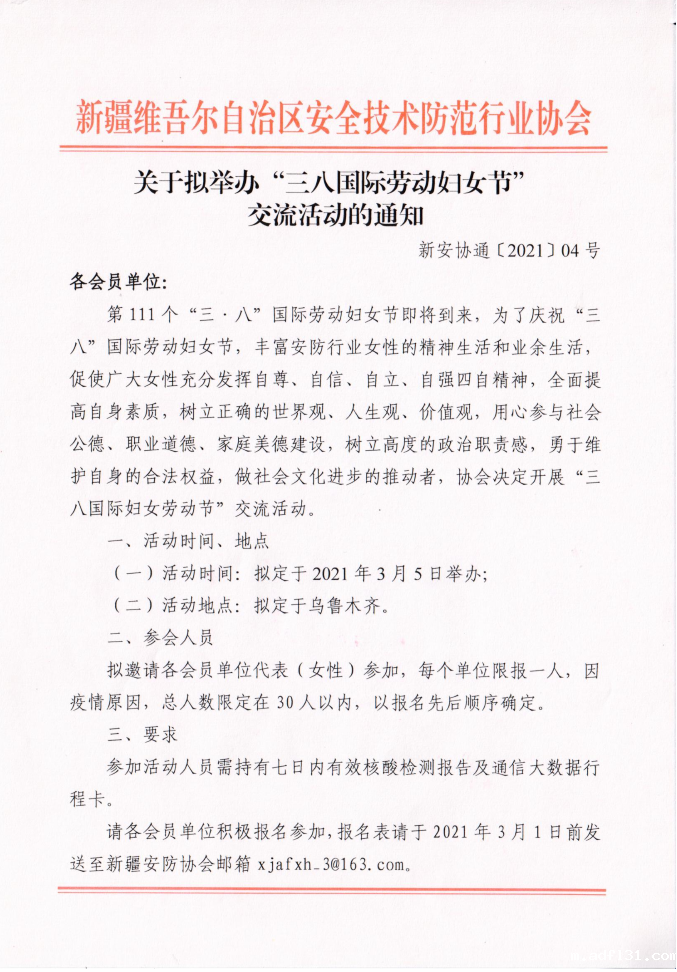 关于拟举办“三八国际劳动妇女节”交流活动的通知