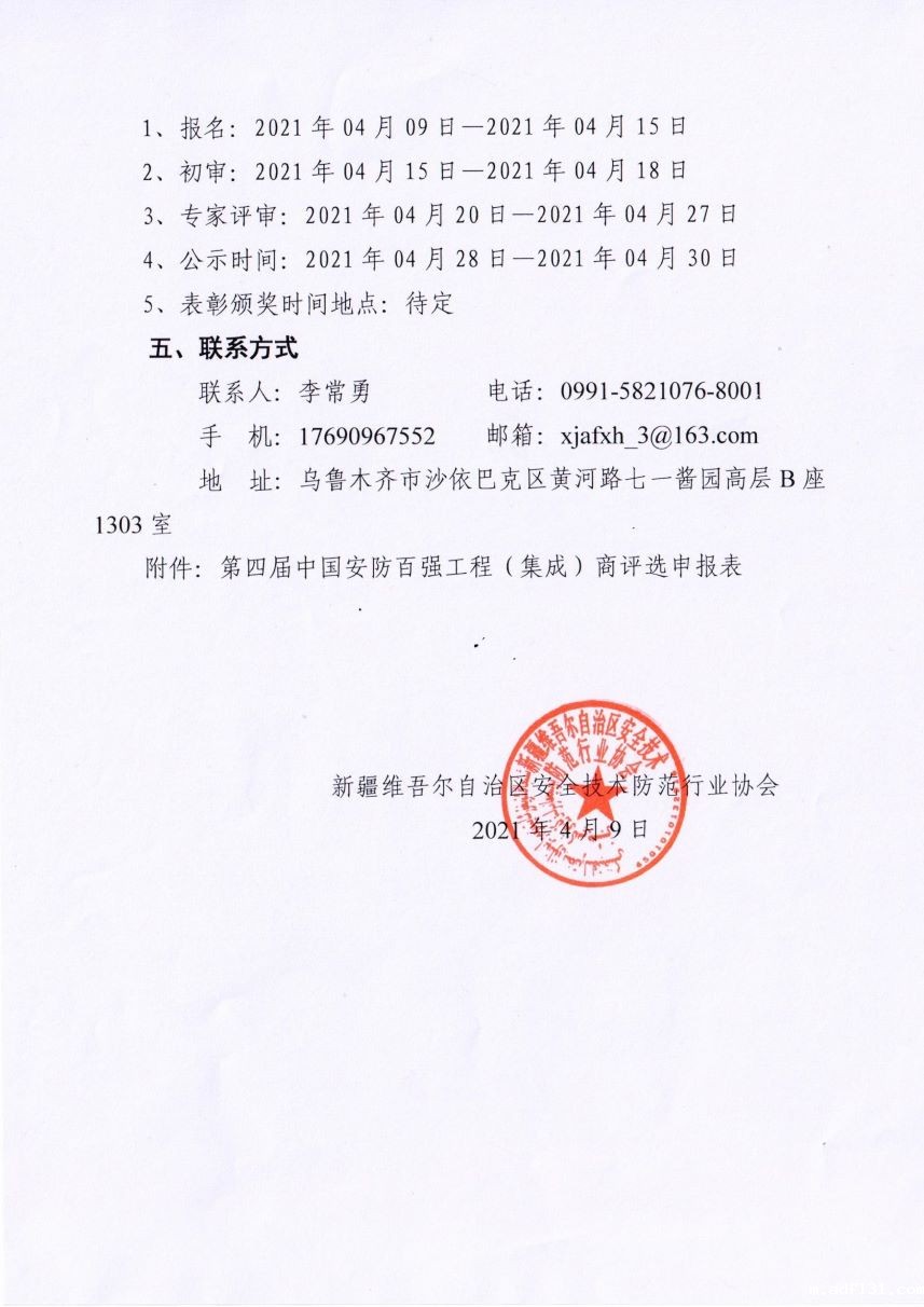 关于第五届中国安防百强工程(集成)商 评选活动的通知