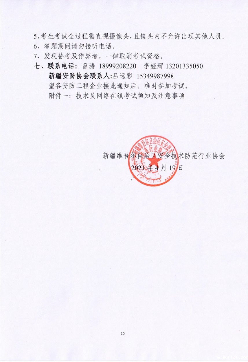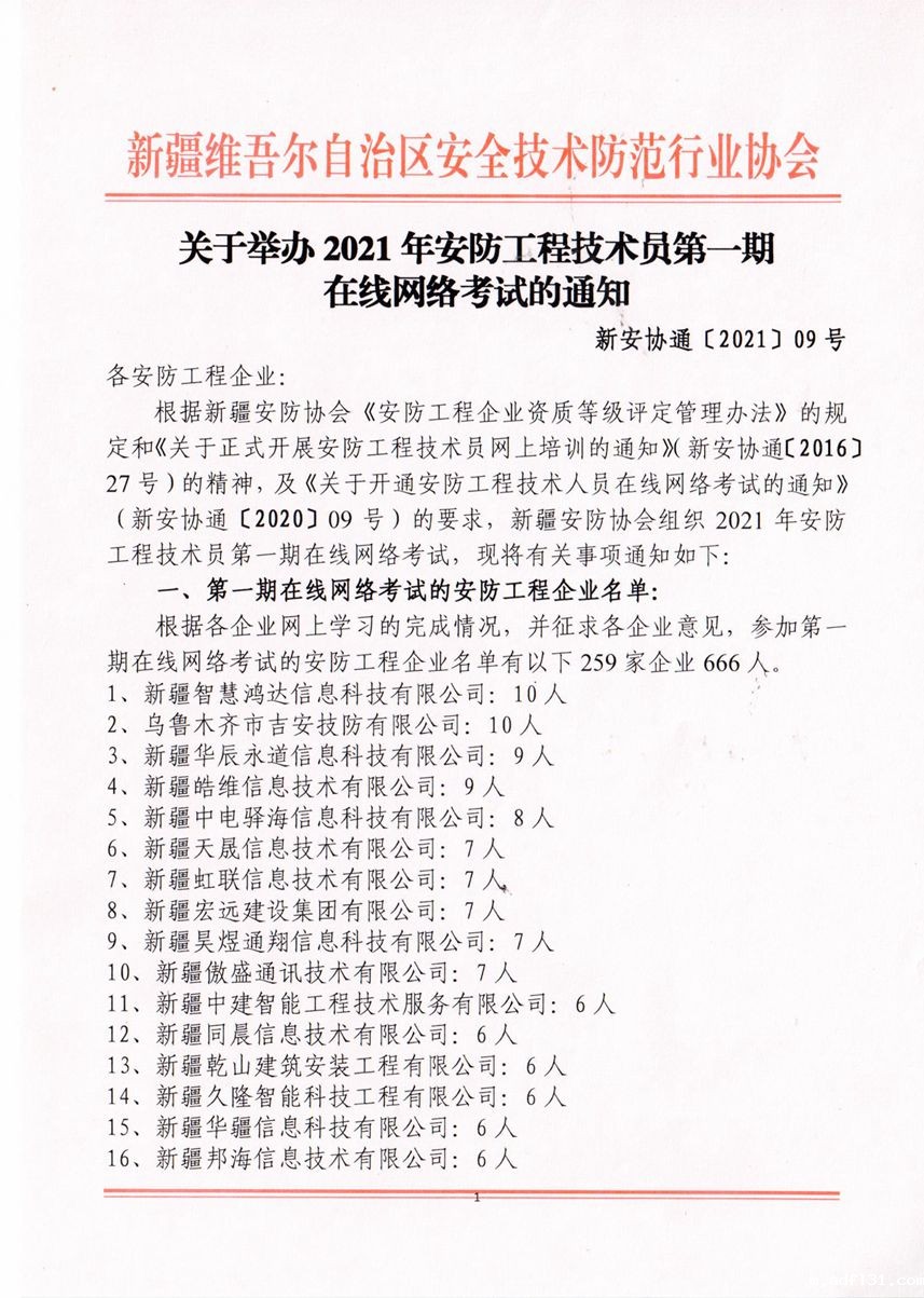 关于举办2021年安防工程技术员第一期在线网络考试的通知