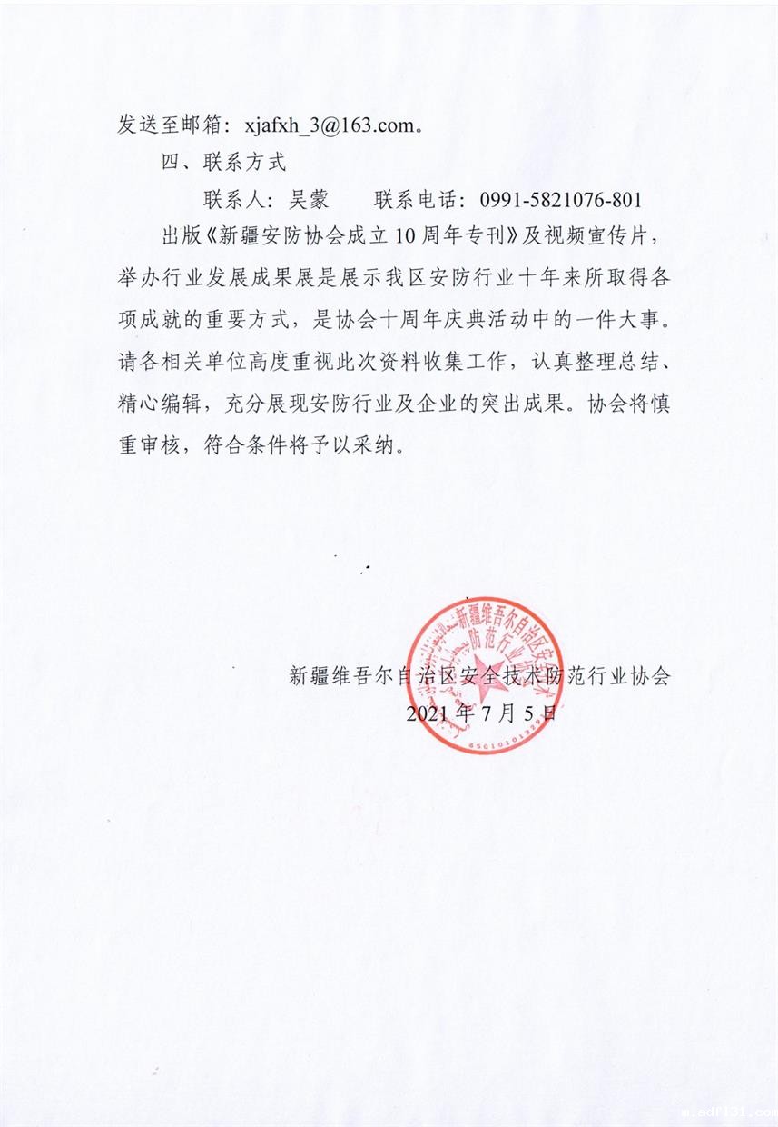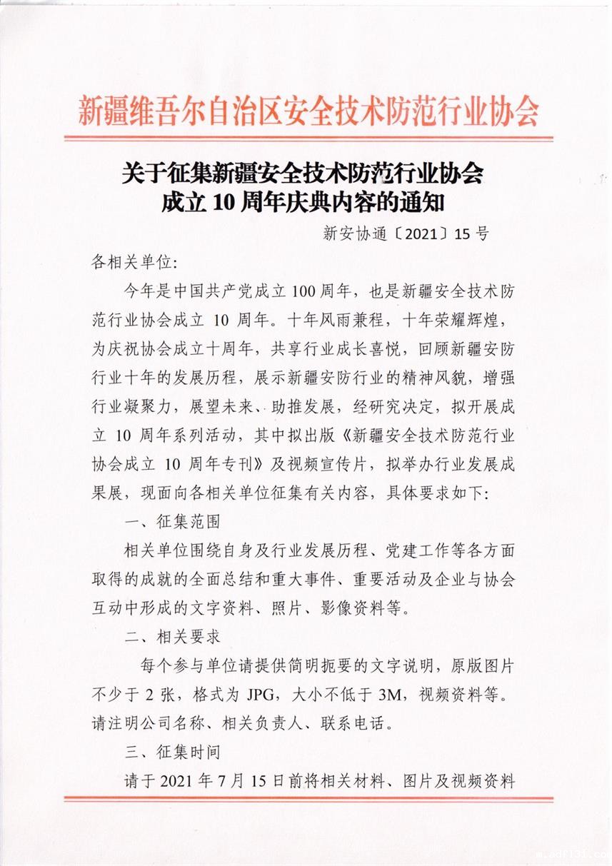 关于征集新疆安全技术防范行业协会成立10周年庆典内容的通知