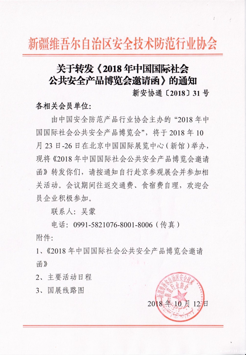 关于转发《2018年中国国际社会公共安全产品博览会邀请函》的通知