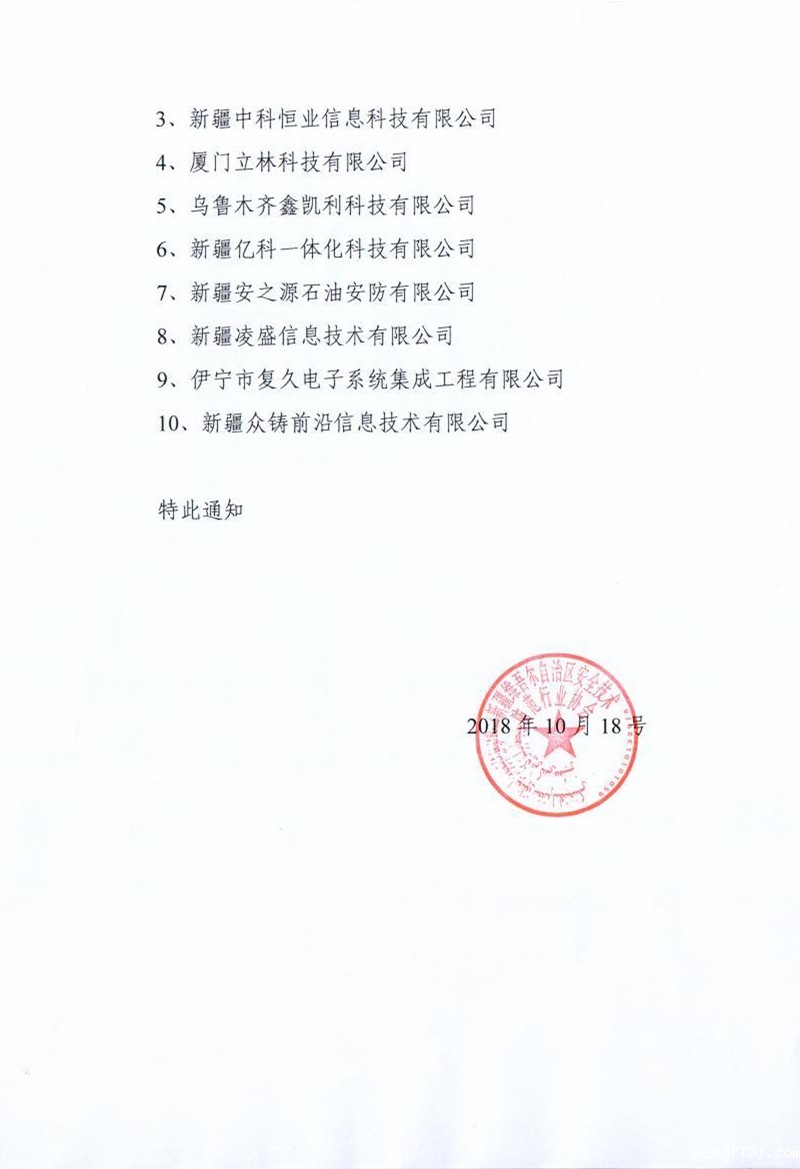 关于增补新疆安全技术防范行业协会理事单位的通知