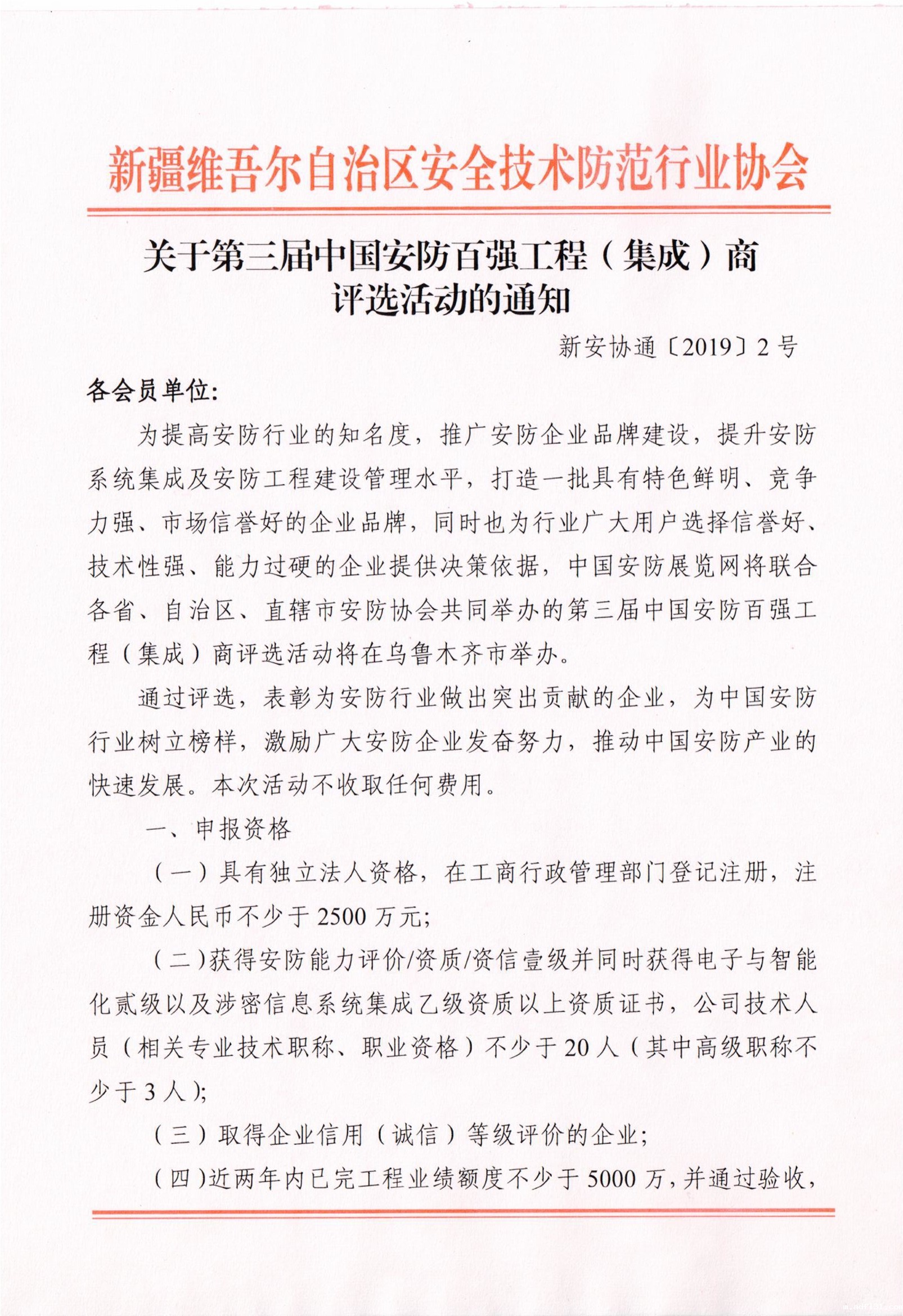 关于第三届中国安防百强工程(集成)商评选活动的通知