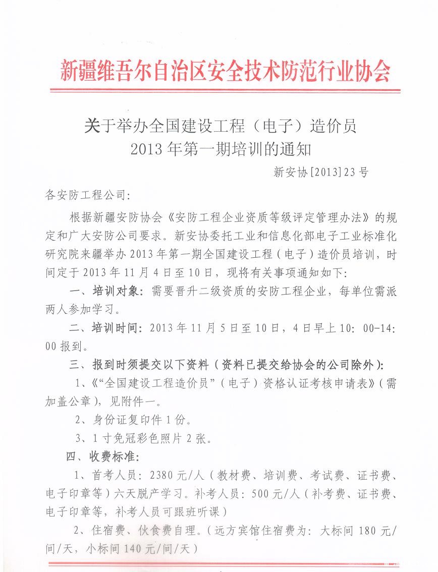 关于举办全国建设工程(电子)造价员2013年第一期培训的通知