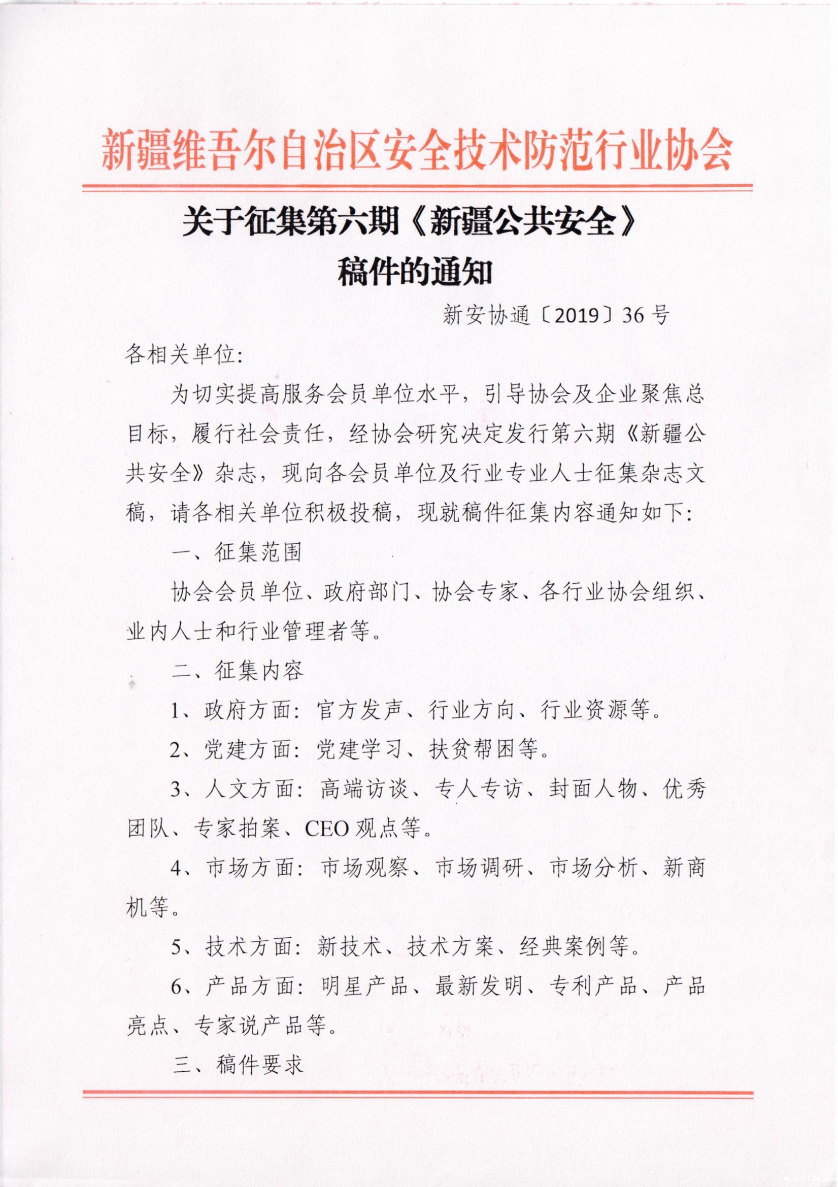 关于征集第六期《新疆公共安全》稿件的通知