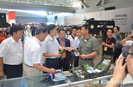 治安总队副总队长殷得洲(左二)参观展会