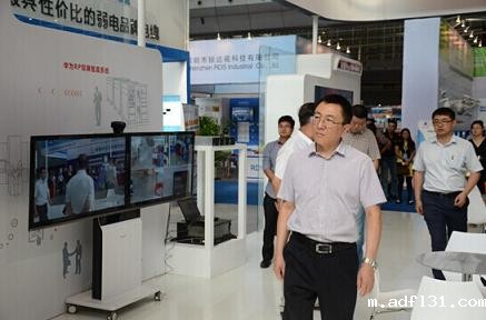 自治区公安厅副厅长王令军参观安博会(左一)、